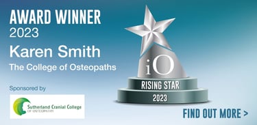 I was awarded ‘Rising Star of 2023’ by the Institute of Osteopathy, which recognises those at the start of their careers who have shown a commitment to their study of Osteopathy and an aspiring commitment to continue the development of the profession.